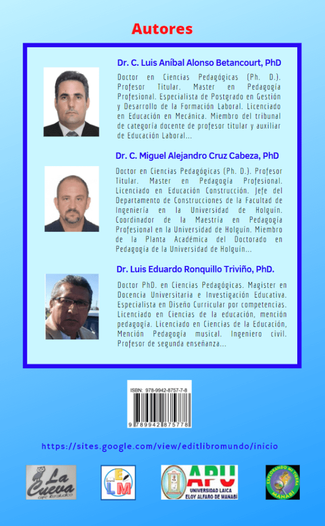 Autores de Obras en Editorial Libro Mundo Autores de obras publicadas Competencias transversales para estudiantes universitarios en prácticas y pasantías Share this: Share on X (Opens in new window) X Share on Facebook (Opens in new window) Facebook Like Loading...