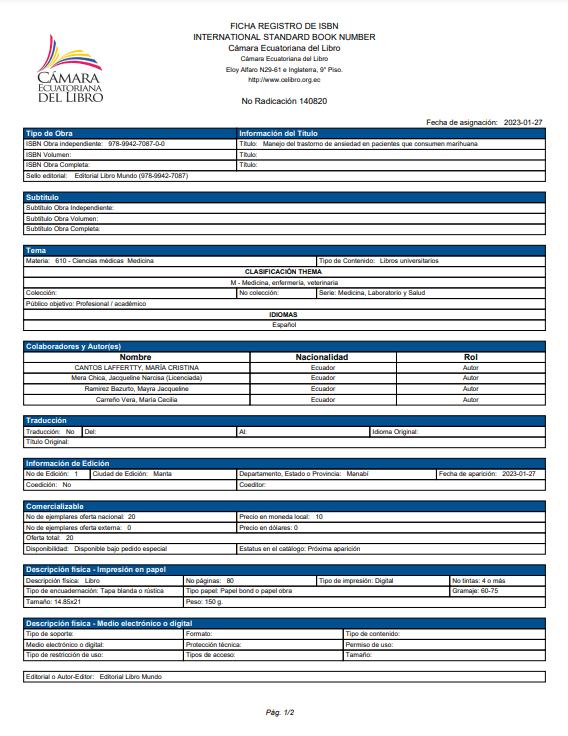 Se elige hablar de este tema tratando de esclarecer algunas dudas desde el punto de vista neurobiológico como el consumo de marihuana puede influir en el desarrollo del trastorno de ansiedad y su manejo. Esto es un poco acerca del contenido de este trabajo espera que el contenido de este trabajo sea útil para lo que desea saber.