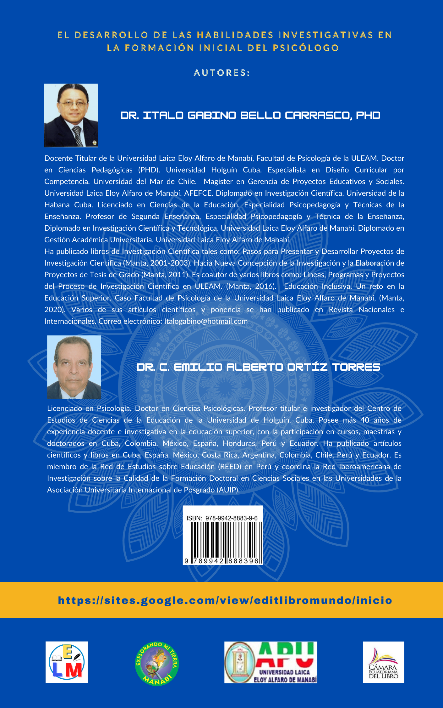 En un recorrido académico, las áreas de investigación de la Universidad Laica “Eloy Alfaro” de Manabí (ULEAM), y un selecto docente formado en los procesos dinámicos de la investigación social, expresan una ardua labor cooperativa en aportes científicos desde lo epistemológico a la praxis en docencia y la formación investigativa del psicólogo. Esta dualidad de correspondencia personal y profesional ha sido posible gracias a la intensa actividad desarrollada por el autor de la presente obra, el profesor Dr. Ítalo Bello Carrasco, gracias a su tenaz y fructífero aporte a la ciencia investigativas, se han plasmado otras obras académicas de diversas líneas de indagación.