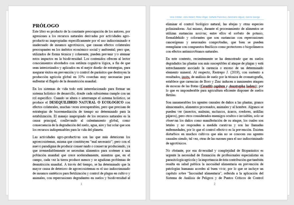 Este libro es producto de la constante preocupación de los autores, por agresiones a los recursos naturales derivadas por actividades agro productivas inapropiadas específicamente por el uso indiscriminado e inadecuado de insumos agro tóxicos, que causan efectos colaterales preocupantes en los ámbitos económico social y ambiental; pero que, utilizados de forma técnica y coherente, pueden prevenir y/o atenuar estos impactos en la biodiversidad. Los contenidos ofrecen al lector conocimientos abordados con sutileza cognitiva lógica, a fin de que sean interiorizados y aplicados en el mejor diseño de estrategias, para asegurar éxitos en prevención y/o control de parásitos que destruyen la producción agrícola global en 33% cosechas muy necesarias para enfrentar el flagelo de la desnutrición mundial.