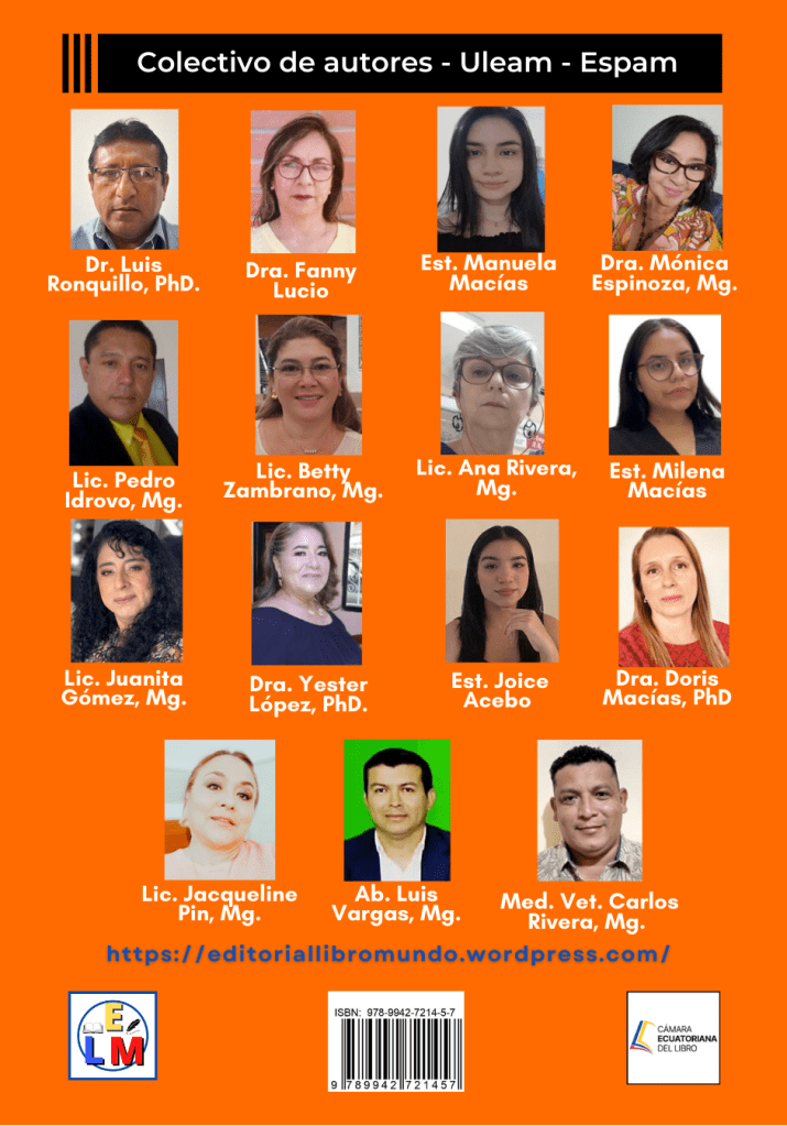 En el capítulo siete titulado -Estrategias metodológicas de enseñanza- los autores Yester Marllory López Zambrano y Joice Madeley Acebo Loor revisan los métodos de enseñanza y los procedimientos, técnicas y estrategias metodológicas requeridas para la implementación en la educación actual.