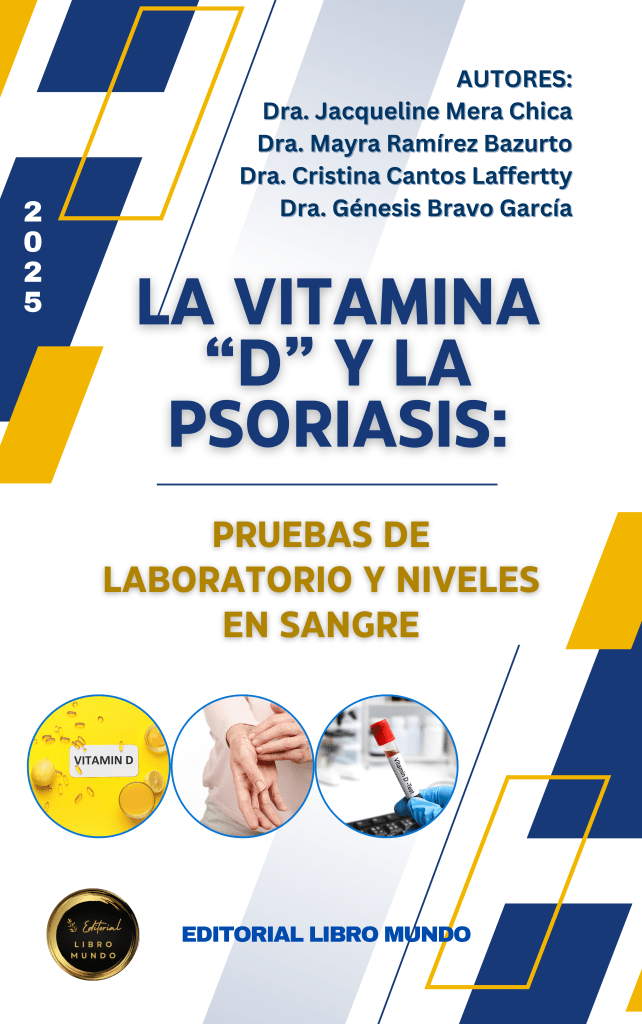El presente libro brinda a la comunidad académica universitaria un estudio sobre la Vitamina D, La Psoriasis y los niveles de sangre en pruebas de laboratorio. Este esfuerzo de varios autores, docentes de la Universidad Laica Eloy Alfaro de Manabí destaca los temas relacionados con una visión educativa, informativa y bibliográfica suficiente, que sustenten el documento narrado considerando el contexto desde una perspectiva del área de la salud.