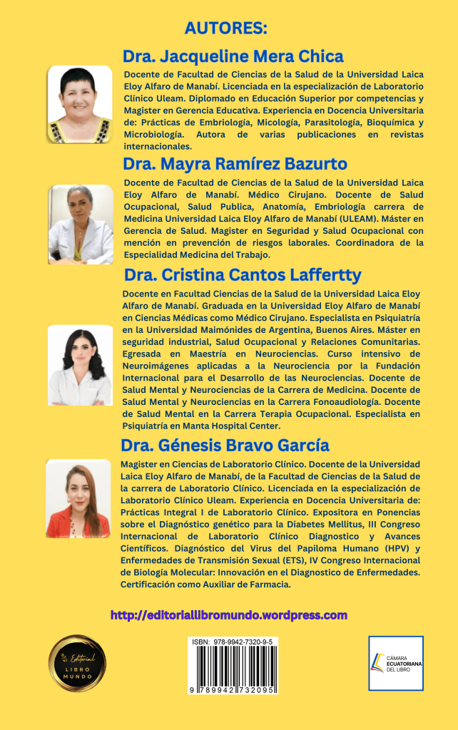 Con este documento académico científico, los autores pretenden promover la lectura y el análisis de temas relacionados con el área de la salud y que estos llenen espacios de interés de estudiantes y docentes universitarios, para que dentro del contexto educativo-formativo, sirva de fuente bibliográfica que respalde los estudios que se realizan en país y de otros contextos universitarios y profesionales.